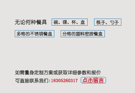 不銹鋼餐盤、碗、碟或(與)密胺餐盤、碗、碟或(與)瓷碗、盤建議方案(關(guān)鍵詞:小、全、凈)