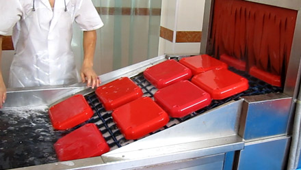 方案概述:集中清洗團(tuán)餐用塑料餐盒+盒蓋,引進(jìn)并吸收利用先進(jìn)的納米氣泡清洗除菌技術(shù),將難以清洗的塑料餐盒方格中的油脂快速乳化、除菌,再輔助噴淋沖洗、遠(yuǎn)紅外烘干消毒, 清洗后的餐具干凈、干燥,直接進(jìn)入保潔柜或封存在大型周轉(zhuǎn)筐內(nèi),無須再進(jìn)入餐具消毒庫。滿足訴求點(diǎn):干凈衛(wèi)生、省錢省力。